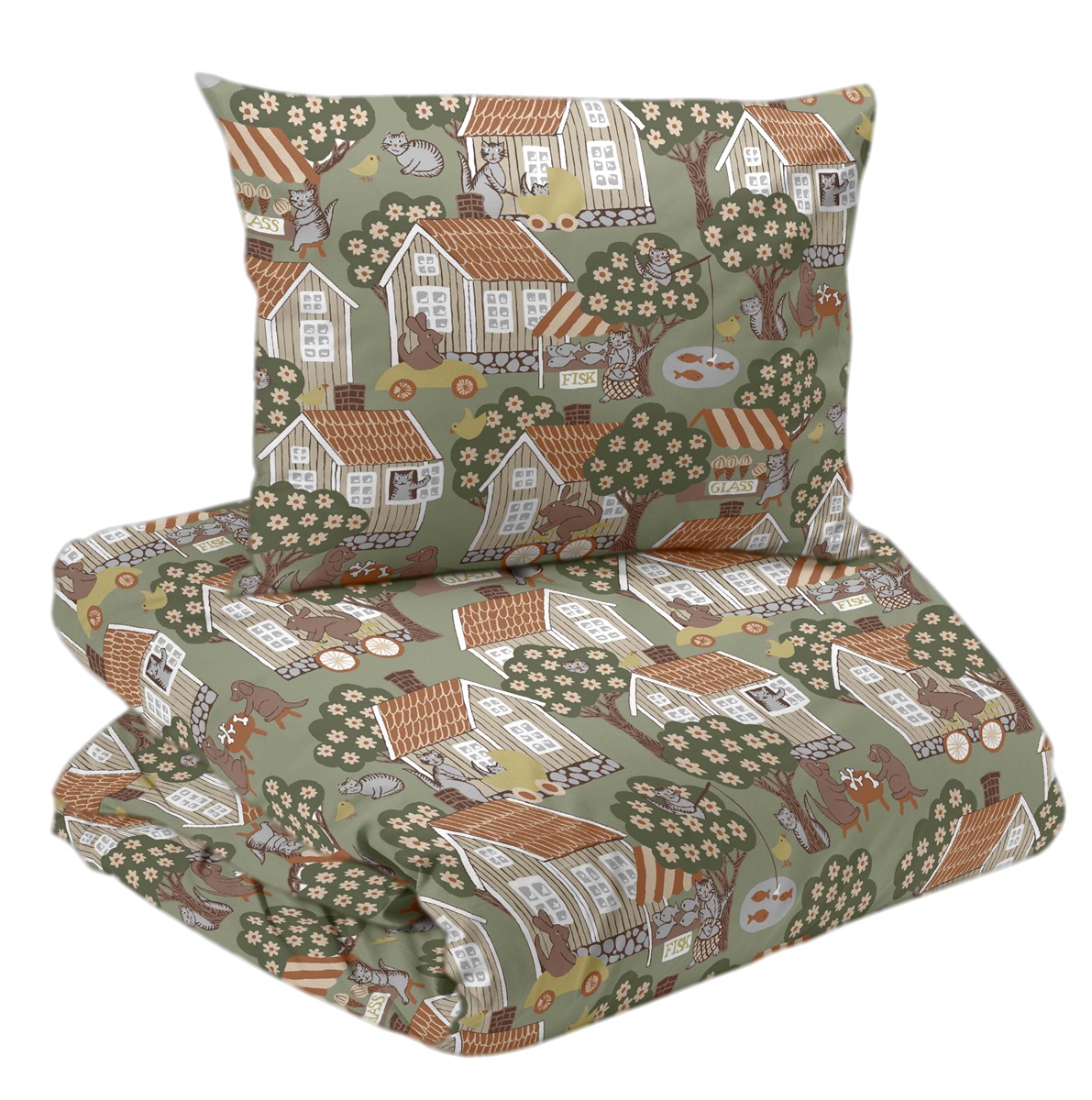 Pussilakanasetti Kumpulat 150x210cm – murrettu vihreä
